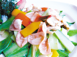 中國民間認(rèn)為玫瑰有“行氣解郁,滋陰清熱”的功效。粉紅玫瑰是浪漫的象征,它嬌俏的外形和顏色容易讓人聯(lián)想到快樂、優(yōu)雅等詞匯。用粉紅玫瑰來做菜很討女生歡心,比如這道“北極深海玫瑰”就充滿浪漫的異國情懷。它里面還有水東芥菜、芥藍(lán)片、北極貝、雞腿肉等,北極貝爽口,玫瑰花瓣清香,各種材料搭配在一起清淡而可口。