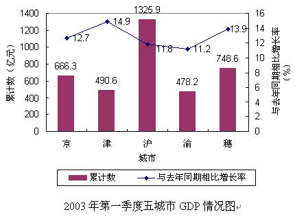 Ⅰ.2003年第一季度五個城市的GDP總量均實現(xiàn)了兩位數(shù)增長