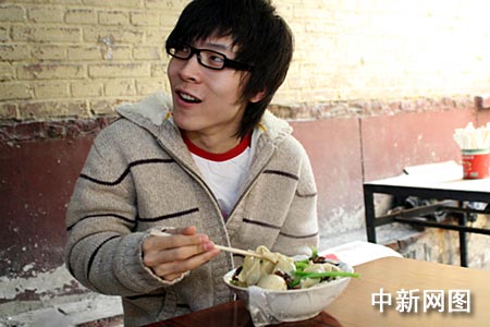 嘯坤最?lèi)?ài)喜歡去的板兒面店絕對(duì)讓人意想不到,不起眼的小門(mén)臉,甚至沒(méi)有屋子,只用塑料布撐起一片當(dāng)作屋頂,剩下的就是幾張破舊但還算干凈的桌椅和簡(jiǎn)易的廚房了。嘯坤樂(lè)呵呵的讓大家坐下后自己過(guò)馬路買(mǎi)燒餅去了,他說(shuō)對(duì)面的燒餅一塊錢(qián)四個(gè),又便宜又好吃,再配上兩塊錢(qián)一碗的板兒面,那簡(jiǎn)直就是人間美味了!