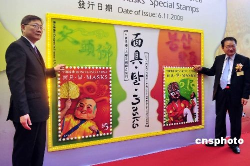 圖:香港發(fā)行“面具”特別郵票