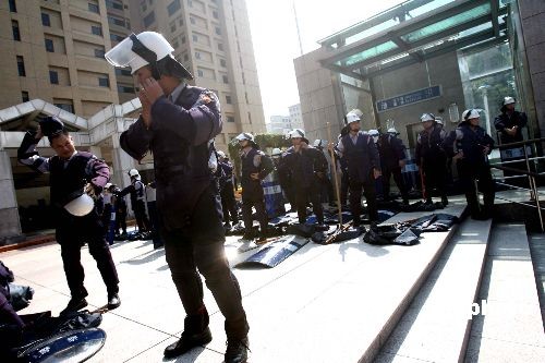 圖:警方在臺北賓館嚴陣以待護衛(wèi)"馬陳會"