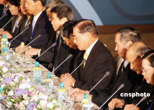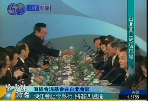 圖:會(huì)談間隙陳云林江丙坤互相倒水顯溫情