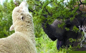 圖:喪母小象與綿羊哥哥相依為命