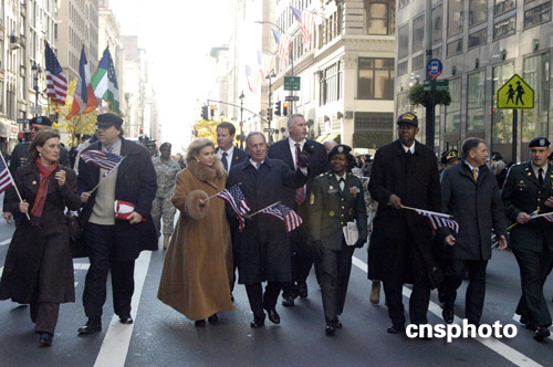 紐約市長彭博參加退伍軍人節(jié)游行