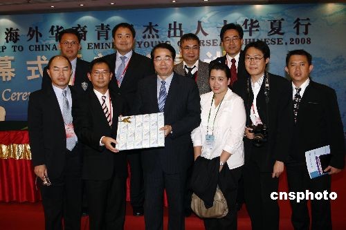 圖:李海峰和海外華裔青年一起聽于丹講座