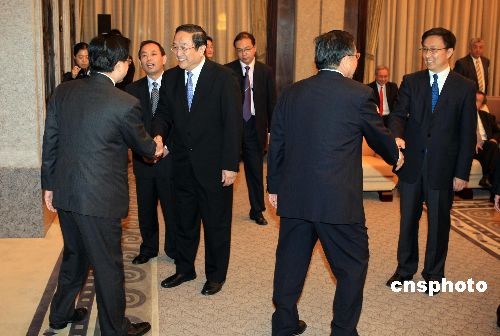 圖:俞正聲、韓正會見臺灣大企業(yè)董事長參訪團