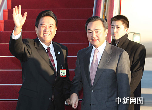圖:陳云林率團飛赴臺灣 王毅機場送行