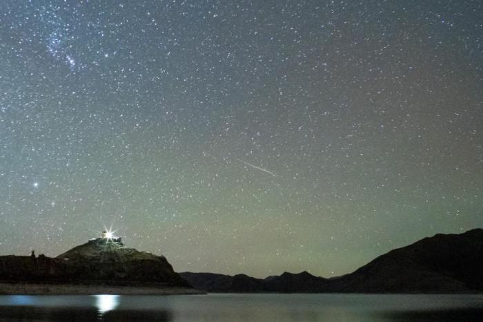 雙子座流星雨劃過西藏羊湖上空