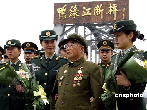 志愿軍老戰(zhàn)士鴨綠江邊紀(jì)念抗美援朝58周年