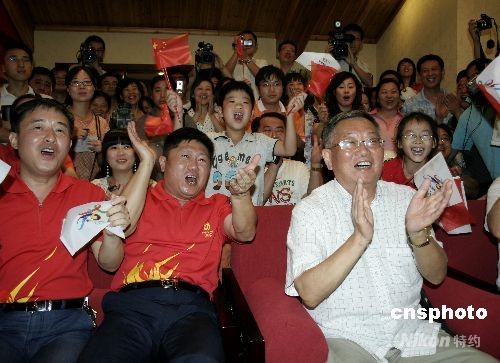 圖:香港市民觀看北京奧運閉幕式
