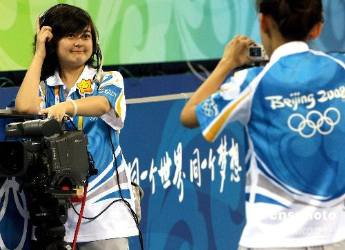 圖:北京奧運會志愿者依依惜別籃球館