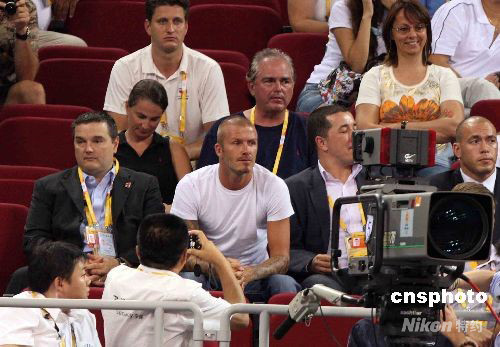 圖:貝克漢姆到場觀戰(zhàn)"夢八隊"奪金