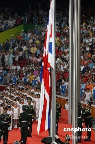 圖:北京奧運會閉幕式上升英國國旗