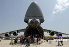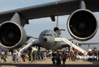 當?shù)貢r間5月4日,位于美國南加州河濱縣的一個美國空軍預備基地舉行規(guī)模盛大的航空展和飛行表演。C-17A全球霸王運輸機、C-5銀河運輸機等空中巨無霸和F-22猛禽戰(zhàn)機等美軍先進軍用飛機亮相展覽,F(xiàn)-22戰(zhàn)機飛行表演、美國空軍“雷鳥”飛行隊的特技表演等令近十萬民眾大飽眼福。