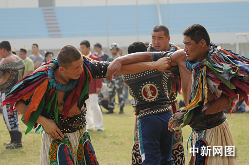 組圖:農(nóng)運(yùn)會(huì)"搏克"摔跤緊張激烈(3)