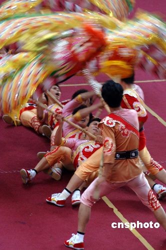 圖:農(nóng)運(yùn)會(huì)舞龍舞獅比賽出神入化