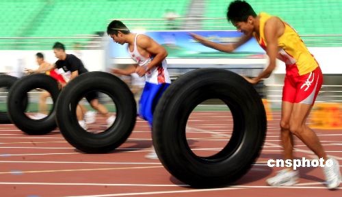 圖:農(nóng)運(yùn)會(huì)的推輪胎賽跑