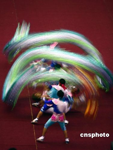圖:全國(guó)農(nóng)運(yùn)會(huì)舞龍比賽技驚四座