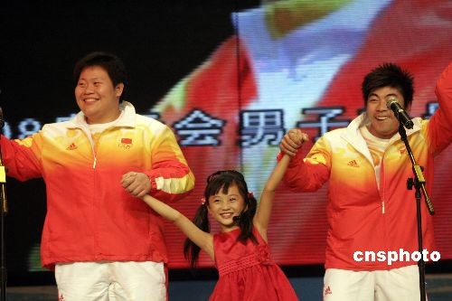 圖:陳燮霞、張湘祥等奧運(yùn)冠軍同臺獻(xiàn)唱