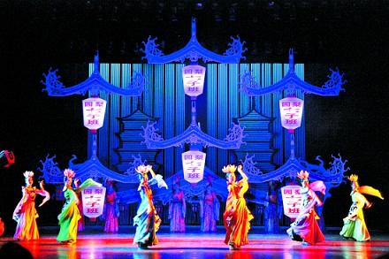 連日來(lái),福建省泉州市舉行精品戲劇劇目巡演活動(dòng),全面展示泉州優(yōu)秀劇目,讓人民群眾共享文化發(fā)展成果,推動(dòng)泉州市文化藝術(shù)的繁榮發(fā)展。10月10日晚,“光明之城”大型歌舞在泉州文化藝術(shù)中心舉行。圖為歌舞中的“韻結(jié)唐宋”片段。 (陳英杰 攝)