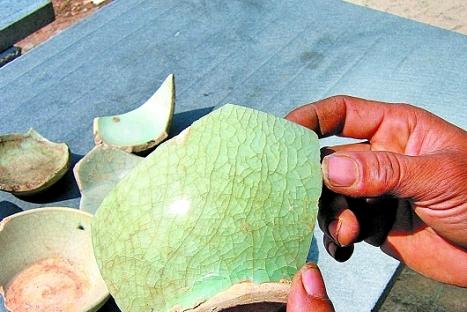 昨日(3日)上午,普查小組來到水庫,只見這里依山傍水,盛產(chǎn)高嶺土和釉水等礦產(chǎn)資源,具備燒制青瓷的條件。在水庫原儲(chǔ)水處發(fā)現(xiàn)了大量陶瓷片,堆積層厚達(dá)1至5米。普查組專家隨手拿起一件碎瓷,碗底有一個(gè)明顯的乳心。專家稱,這是明顯的元代青瓷特色。