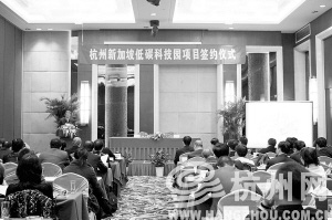 11月24日,杭州錢江經(jīng)濟開發(fā)區(qū)與新加坡凈化科技企業(yè)集團就杭州—新加坡低碳科技園項目正式簽署合作協(xié)議,新加坡工商聯(lián)合總會有關(guān)負(fù)責(zé)人及數(shù)十家新加坡企業(yè)代表出席簽約儀式。