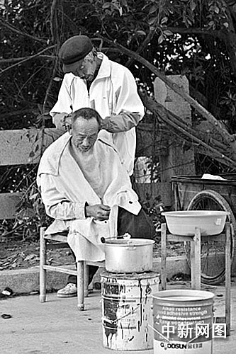 中新網晉江2月20日電 (秦越 )在上個世紀五六十年代,“剃頭挑子”很流行,就是一個理發(fā)師傅挑著擔子搖著鈴鐺走街串巷,擔子一頭是洗臉盆架和一個生著火的爐子,另一頭是一條長板凳,專門給人理發(fā)。近日,記者在閩南僑鄉(xiāng)晉江市區(qū)蓮溪路上就遇見一個這樣的“剃頭”師傅:和以前不一樣的是長板凳換成了靠背椅,扁擔換成了三輪自行車。