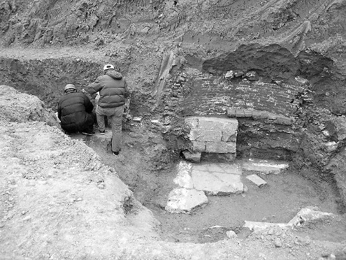 “這座古墓有點(diǎn)奇怪。”11日下午,濟(jì)南市考古研究所現(xiàn)場(chǎng)考古領(lǐng)隊(duì)何力介紹說(shuō),上面這座古墓南北長(zhǎng)6.8米,東西寬3.2米,已經(jīng)遭到建筑方嚴(yán)重破壞,現(xiàn)在可以確定是元代的磚室墓。而下面的條石所圍成的建筑,可能是另外一座石室墓,也有可能是一座“地宮”建筑,其年代要早于上面的磚室墓上百年。