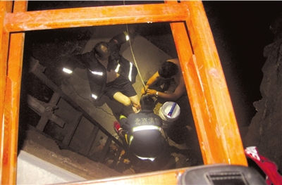 香山消防中隊(duì)消防員到場(chǎng)后,在塌陷坑上方搭建安全支架。幾名消防員下到坑底,為楊先生系好安全繩索,其中一人還脫下衣服為赤膊的楊先生披上,隨后順利將其拉到地面。已等在一旁的120急救人員迅速將楊先生送往醫(yī)院。