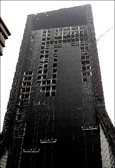 據(jù)附近的居民介紹,央視配樓的修繕工作開始至少兩個月了,每天都有工人從“過火樓”上扔下很多被燒后廢棄的材料。