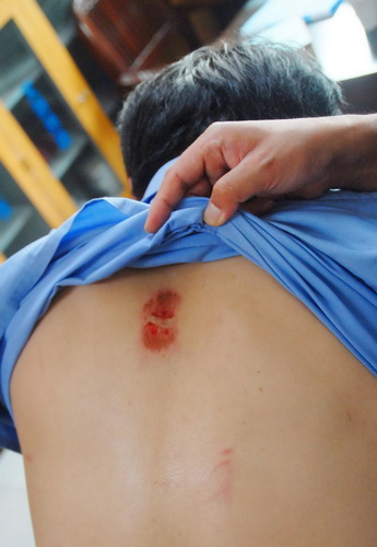 據(jù)記者了解,當(dāng)日8點(diǎn)左右,十幾名傳銷不法分子糾集在龍崗工商分局,索要他們之前被查扣的人員名單以及資料,當(dāng)工商執(zhí)法人員表示這些被查扣的資料要進(jìn)行備案存儲(chǔ)不能歸還后,隨即遭到了傳銷分子毆打。記者在現(xiàn)場(chǎng)看到龍崗分局4人受傷,其中一名執(zhí)法人員左手被磚頭砸傷,一人左眼框被拳擊致骨裂,還有執(zhí)法人員身上多處被咬傷。據(jù)了解,早在當(dāng)天上午,這些傳銷分子便已在上班途中包圍了龍崗分局一些執(zhí)法人員,公開威脅稱知道其家庭住址,并尾隨其后來到單位,氣焰極其囂張。后經(jīng)報(bào)案,民警趕至現(xiàn)場(chǎng),將沒有來得及逃脫的2名不法分子樊某某,黃某某現(xiàn)場(chǎng)抓獲,其他人均已逃跑,現(xiàn)場(chǎng)傳銷分子能夠確定的有7男1女。