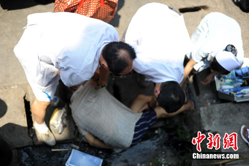 中新網(wǎng)重慶7月30日電(連肖 劉函冉)30日下午14時(shí)許,記者路過重慶陳家坪汽車站時(shí)看到,一六旬老人倒在車站出站口外的排水溝里!120”急救人員稱,該老人極有可能是因下空調(diào)車后,無法適應(yīng)室外40多度的高溫,突發(fā)心腦血管疾病猝死。