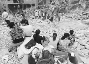 臨近傍晚,舟曲縣上空的陽光依然灼熱,事故救援現(xiàn)場更熱。泥石流長約5000米、平均寬度300米、平均厚度5米,總體積200多萬立方米。在這片區(qū)域內(nèi),聚集了上千名救援人員,分成數(shù)十隊,各自揮鍬運(yùn)鏟,奮力救人。廢墟下的生還希望越來越渺茫,他們的堅持卻從未停歇。