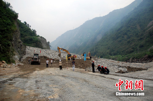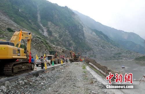 截至16日8時(shí)30分,已清理滑坡體2萬方,預(yù)計(jì)第一處塌方路段今日17時(shí)可打通便道,老虎嘴至映秀段7天左右打通便道。