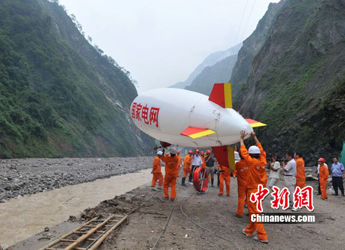 中新網(wǎng)綿竹8月17日電(記者劉忠俊 實習(xí)生卿詩杰)17日晚間,經(jīng)過160余名電力搶險員工的齊心協(xié)力采用飛艇放線方式,綿竹清平鄉(xiāng)35千伏架空線路全線搶通,恢復(fù)了對清平泥石流災(zāi)區(qū)的永久性正式供電。