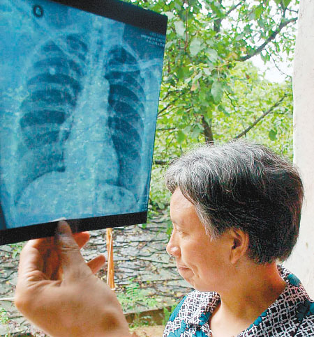 采訪中,記者從楊花花提供的X光片上看到,拍片時(shí)間為2010年6月30日上午9時(shí)許,檢查部位是楊的肺部。據(jù)楊講,她還需要治療,但礦上給家屬施壓就提前出院了!暗浆F(xiàn)在頭還突然地疼,天天吃藥呢!