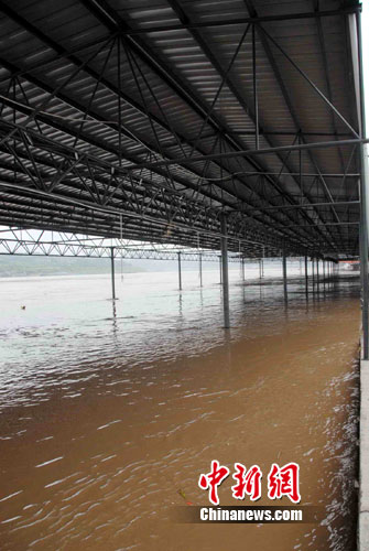 中新網(wǎng)重慶8月24日電 (杜遠(yuǎn) 連肖)新一輪洪峰今天過(guò)境重慶主城,當(dāng)?shù)匾恍┑貏?shì)低洼的地段被淹,洪水還使當(dāng)?shù)匾慌R江水果市場(chǎng)部分?jǐn)偽槐谎停尮县湹纳饷墒懿簧贀p失。