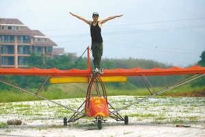 锃亮的不銹鋼骨架、紅色帆布纏綁成的機(jī)翼,只能容一人坐。曾強(qiáng)說,他在浙江訂制了一臺發(fā)動機(jī)(由250毫升排量的摩托車發(fā)動機(jī)經(jīng)過改裝,功率提高了2倍),發(fā)動機(jī)還沒有運(yùn)到,一旦裝上就將真正“騰飛”起來。