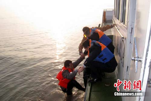 3名船員被接到海巡艇上,海事人員開啟了空調(diào),并給船員送上衣服和開水。目前,九江海事局正在組織沉船打撈工作。