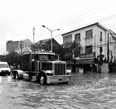 8日深夜,余姚市中心水深沒(méi)腰,道路一片漆黑。汪洋之中,一臺(tái)碩大的重型卡車(chē)喘著粗氣,在深水中往返救援。撕開(kāi)夜幕的車(chē)燈光,給一些被大水圍困了兩天的群眾帶來(lái)了希望。