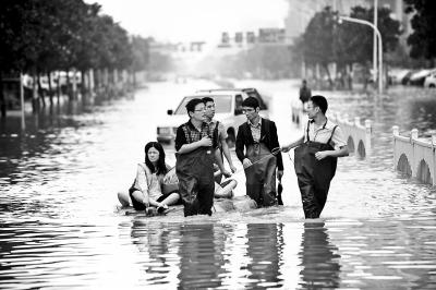 救災(zāi)辦工作人員告訴北青報(bào)記者,救災(zāi)物資現(xiàn)在還比較充裕,前天剛接收了7000箱礦泉水,運(yùn)輸問(wèn)題成為難點(diǎn)。很多道路不暢通,一部分是因?yàn)榉e水過(guò)多,一部分因避災(zāi)車(chē)輛、拋錨的故障車(chē)阻塞立交橋,車(chē)輛無(wú)人認(rèn)領(lǐng)。對(duì)這種車(chē)輛,首先從交警處聯(lián)系車(chē)主,實(shí)在沒(méi)有辦法的用拖車(chē)拖到路邊。另外,部分受災(zāi)區(qū)域積水深度也很尷尬,“70厘米的水深,沖鋒舟、皮劃艇都駛?cè)氩涣耍俗哌M(jìn)去又全都濕透。”