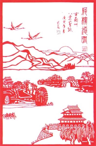 葉長友剪紙:古八景之河樓遠眺蘭州