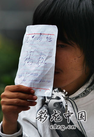 羞澀的表情,略亂的頭發(fā),穿一身白色衣服,旁邊擺一個旅行包。這個臉上還有著稚氣的小伙子,用蹩腳的普通話指著紙上的字,有些不好意思地說:“寫得很不好。”手舉一張紙遮住臉,上面是他自己用鋼筆寫的“此廣告位出租”6個大字,右下角留的小字標有自己的QQ號和電子郵址。
