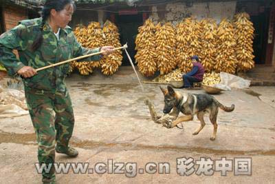 因為家中的男人們要忙于農(nóng)活,于是每天馴養(yǎng)犬的工作,也就落到了村中女子的肩上。她們每天都要和犬親密接觸3個多小時,為了方便訓(xùn)犬,早已經(jīng)將這當(dāng)作一份事業(yè)的農(nóng)婦們,還專門置辦了統(tǒng)一樣式的迷彩裝。矯健的身影、燦爛的笑容,配合著專業(yè)的訓(xùn)練口號,于是,村中便常常出現(xiàn)農(nóng)村婦女集體訓(xùn)犬的壯觀場面。