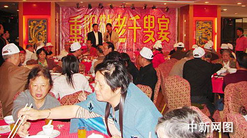 中午,出游歸來的千名老人又相聚在王府酒樓參加“千叟宴”,舉杯共慶“重陽節(jié)”。席間但看壺中酒,杯杯先敬老年人。衡陽市長彭崇谷在盛宴開始后,舉杯向老人們敬酒。席間,主辦方還朗誦了清朝康熙皇帝在陽春園第一次舉行千人大宴中席賦的《千叟宴》詩一首,博得老人們的陣陣掌聲。今年已80高齡的鄭仲儀老人飲了兩杯酒后,興奮不已,對記者說,自己還從來沒有與這么多的老年人一同赴宴,能參加這樣的盛宴,不管吃什么自己都覺得很開心;厝ズ髮⒏嬖V兒孫們,要把中華民族敬老愛幼的傳統(tǒng)美德一代一代傳承下。