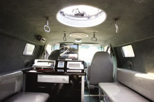 “除了功能上的特殊性,這輛車還裝備了很多高科技裝備!”張國強(qiáng)介紹說,除駕駛員外,這輛全封閉的車子可以搭載12名突擊隊(duì)員,但這樣一來,換氣就成了問題。所以,在該車中部天窗附近,還增設(shè)了一處特制的換氣扇,保證了車內(nèi)充足的氧氣量;其次,該車還配備了特制的逆變電源,就算是車子在停止?fàn)顟B(tài),通過這種特殊的設(shè)備,12伏的電壓也能在瞬間轉(zhuǎn)變?yōu)?20伏電壓,以保證車內(nèi)電腦、監(jiān)控屏幕等電子設(shè)備正常工作。