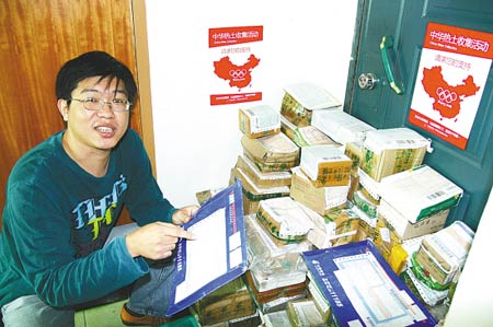 在杭州市江干區(qū)筧橋鎮(zhèn)的一間出租房里,一個叫鄭曉亮的山西小伙,正在為他的一個夢想而奮斗。他要收集全國2800多個縣級行政區(qū)域的泥土,按比例做成一張中國地圖,在上面插滿奧運圣火,然后把這個特殊的禮物獻給2008北京奧運會。