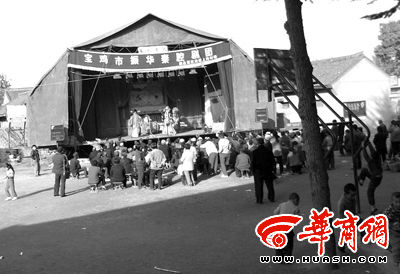 陜西寶雞渭濱區(qū)馬營(yíng)鎮(zhèn)樸南村一村民家把喪事辦到了學(xué)校里,在學(xué)校操場(chǎng)搭起舞臺(tái)唱大戲,而全校師生則因此而放假兩天。