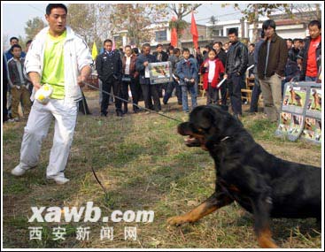 昨日上午,在位于我市西三環(huán)東晁家莊村村口的亞洲育犬聯(lián)盟年度會(huì)議現(xiàn)場(chǎng),云集了來(lái)自韓國(guó)、日本、臺(tái)灣等國(guó)家和地區(qū),以及國(guó)內(nèi)多家育犬、馴犬基地的大量世界名犬,它們?cè)跔恳龓煹膸ьI(lǐng)下,或輕盈起舞、或翻滾側(cè)臥,紛紛亮出絕技一試高下。外形兇猛的藏獒剛一亮相,就吸引了不少觀眾的目光。這些平時(shí)兇猛、體格健碩的“大家伙”在牽引師的牽引下卻格外靈活,為了“選美”,它們不時(shí)地做著各種動(dòng)作,似乎在向觀眾展示自己最漂亮的一面。尤其是當(dāng)它們邁著矯健的步伐走起“貓步”時(shí),更使得場(chǎng)上觀眾報(bào)以熱烈掌聲。在旁邊的賽場(chǎng)上,牽引師剛剛帶著一只蘇格蘭牧羊犬上場(chǎng),其他在場(chǎng)外等候的寵物狗也迫不及待地想跟在后面上場(chǎng)表演,幸虧被牽引師攔了下來(lái)。