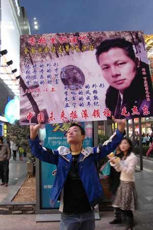 這次,阿杰來到長沙一家酒吧擔任主持人,并再次打出征婚廣告,雇人在黃興路步行商業(yè)街進行舉牌!叭绻陂L沙征婚失敗,我還會去其他城市,將征婚進行到底!卑⒔苷f。